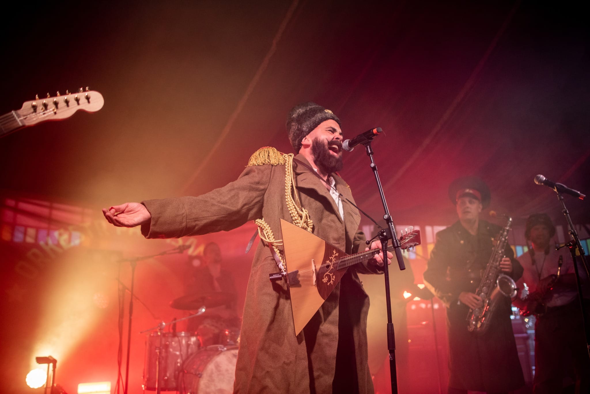 Orkestr Partisanski er et 10-mandsorkester med høje pels hatte, militærstøvler og