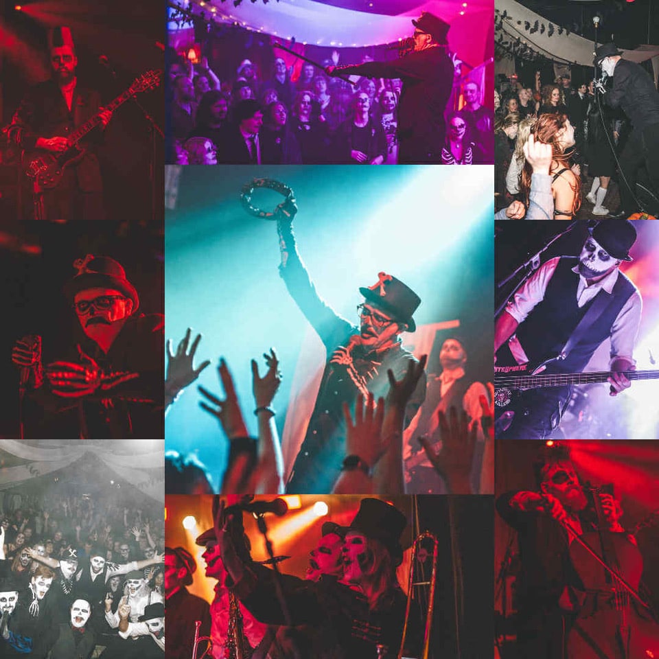 Det er the swinging twenties iført, corpsepaint og bowlerhatte. Stig Gamborg i front er et