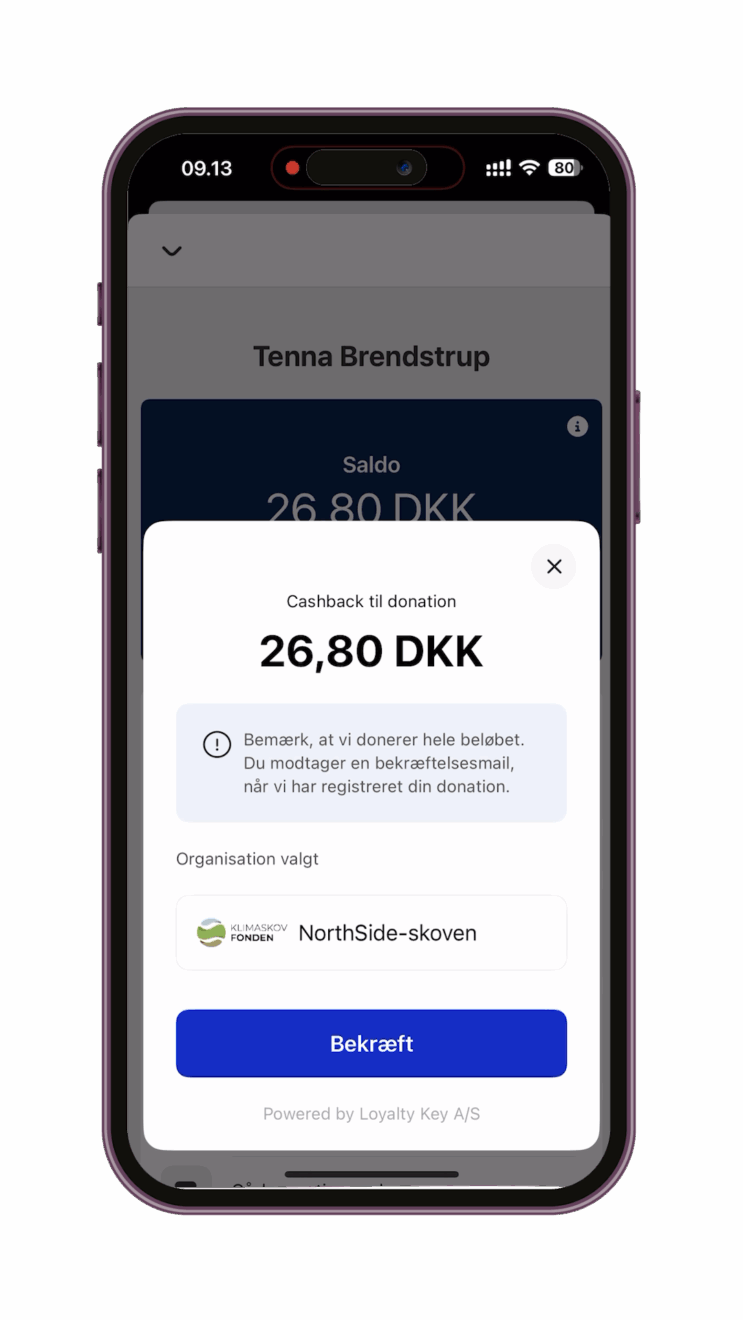 Download Visa Cashbacks-app’en, brug dit Visakort på mad og drikke, og få pengene automatisk tilbage. Eller donér dem direkte til NorthSide-skoven og skab mere natur.